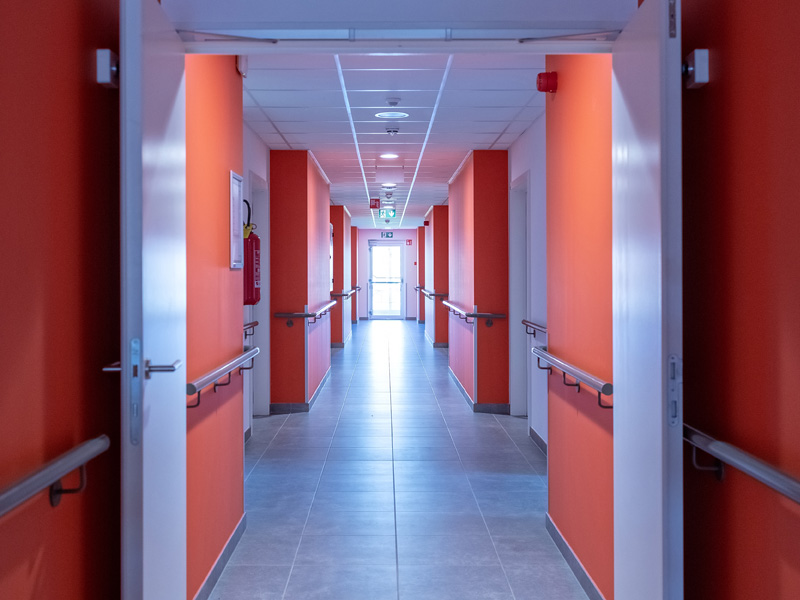 Les chambres (visibles ici) ont été pensées afin d'être assez vastes (plus de 20 mètres carrés). Meublées, équipées d'une salle de bains individuelle, d'une ligne téléphonique privée, d'un système d'appel infirmier moderne et fiable, d'un frigo, d'une télévision, du Wi-Fi gratuit, vous apportent tout le confort nécessaire à une qualité de vie bien réelle. En outre, la flexibilité architecturale permet d'accueillir des couples.